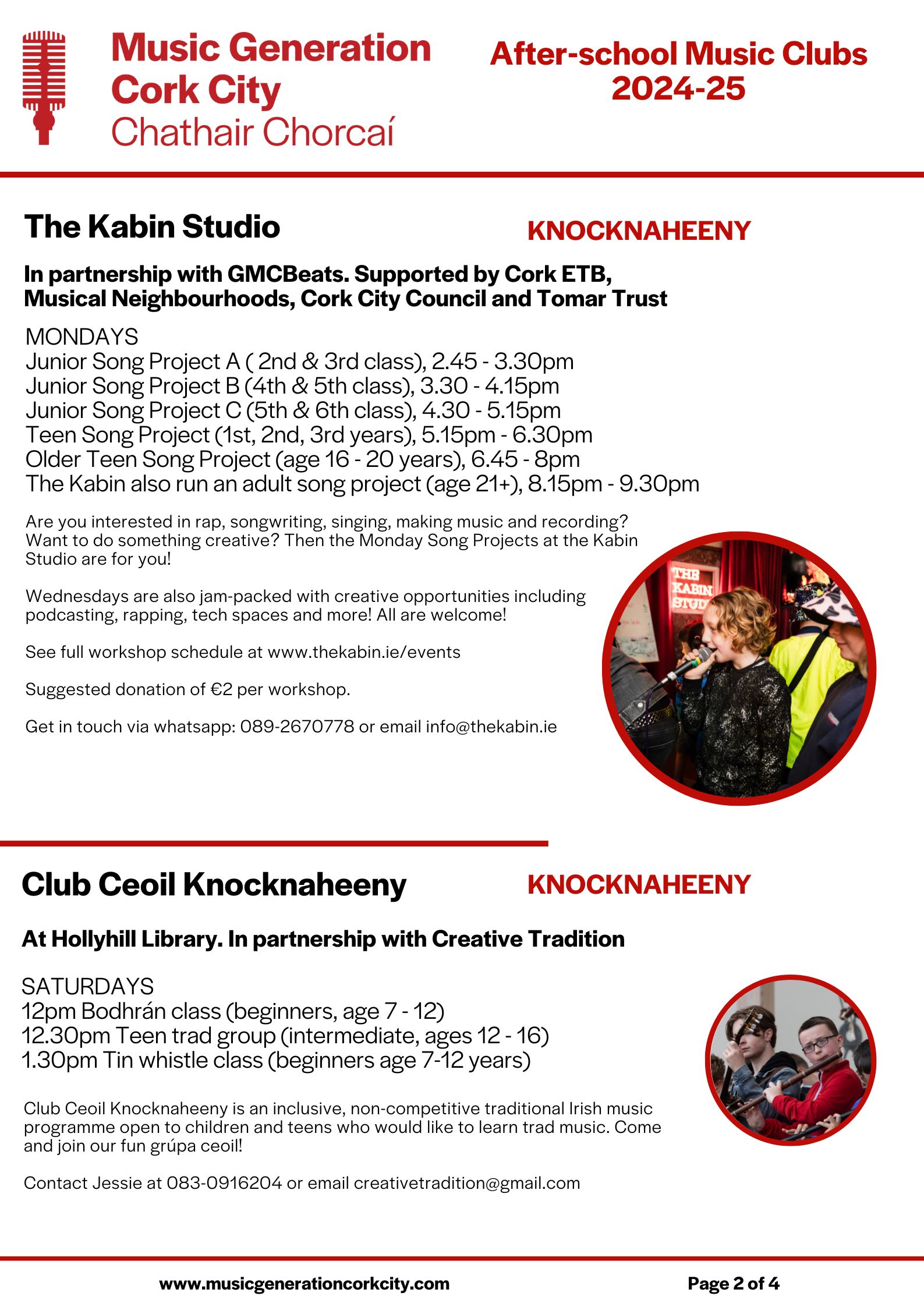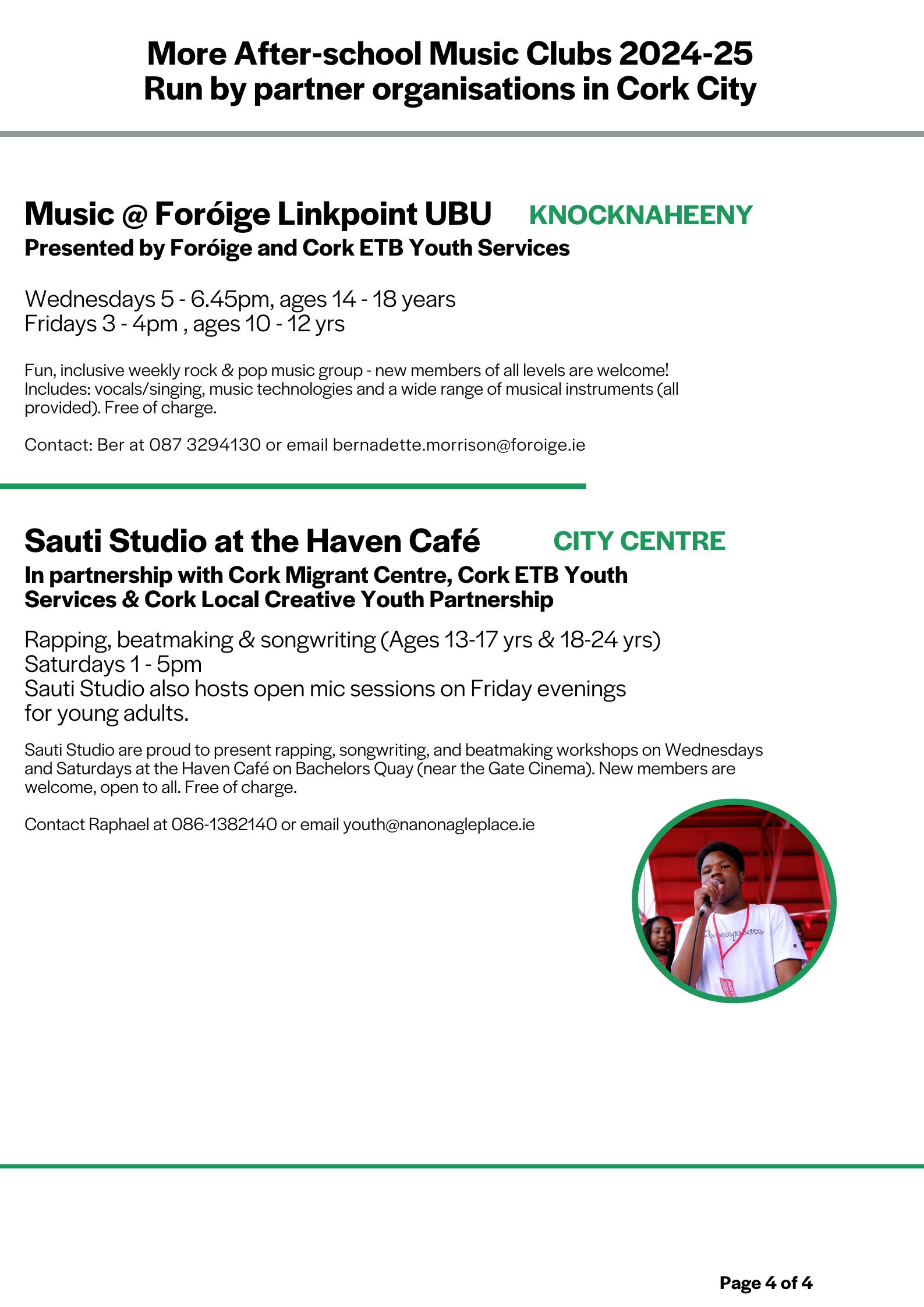 With everything from rapping and beatmaking to brass/wind programmes, trad and rock/pop – there is something for everyone! See below for full details!