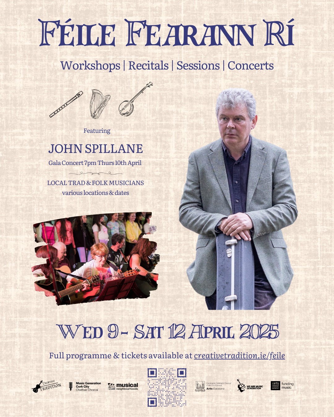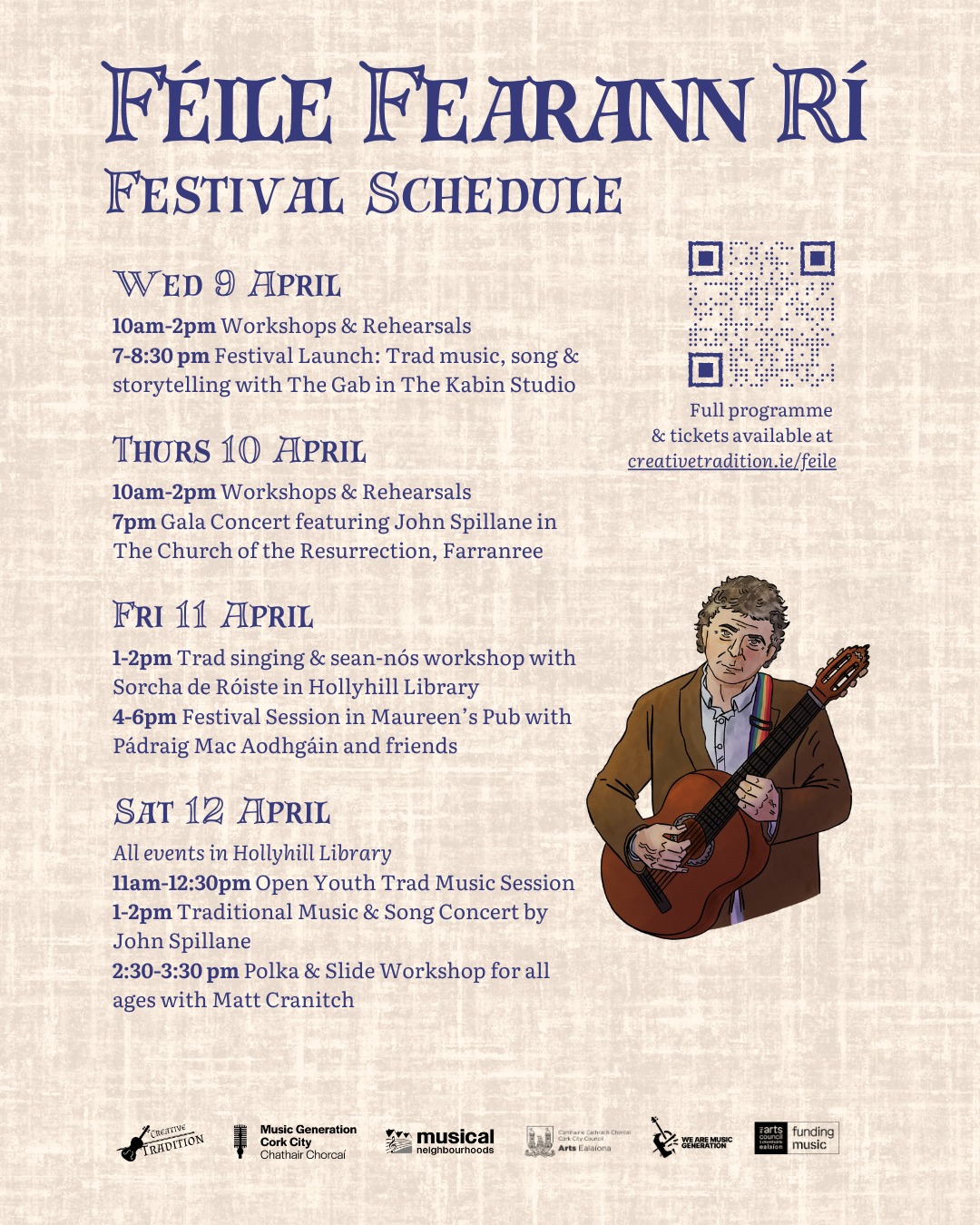 Féile Fearann Rí is presented by Creative Tradition, Music Generation Cork City, Musical Neighbourhoods, local schools, Farranree Parish, Cork City Libraries, and community groups like The Kabin Studio.